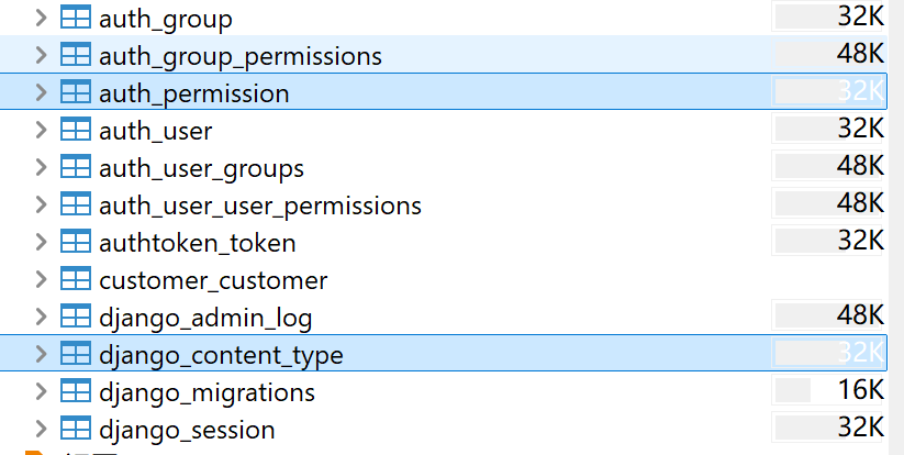当我们创建模型,比如我之前创建的客户模型,Django会自动给每个模型创建4个默认权限,增删改查。